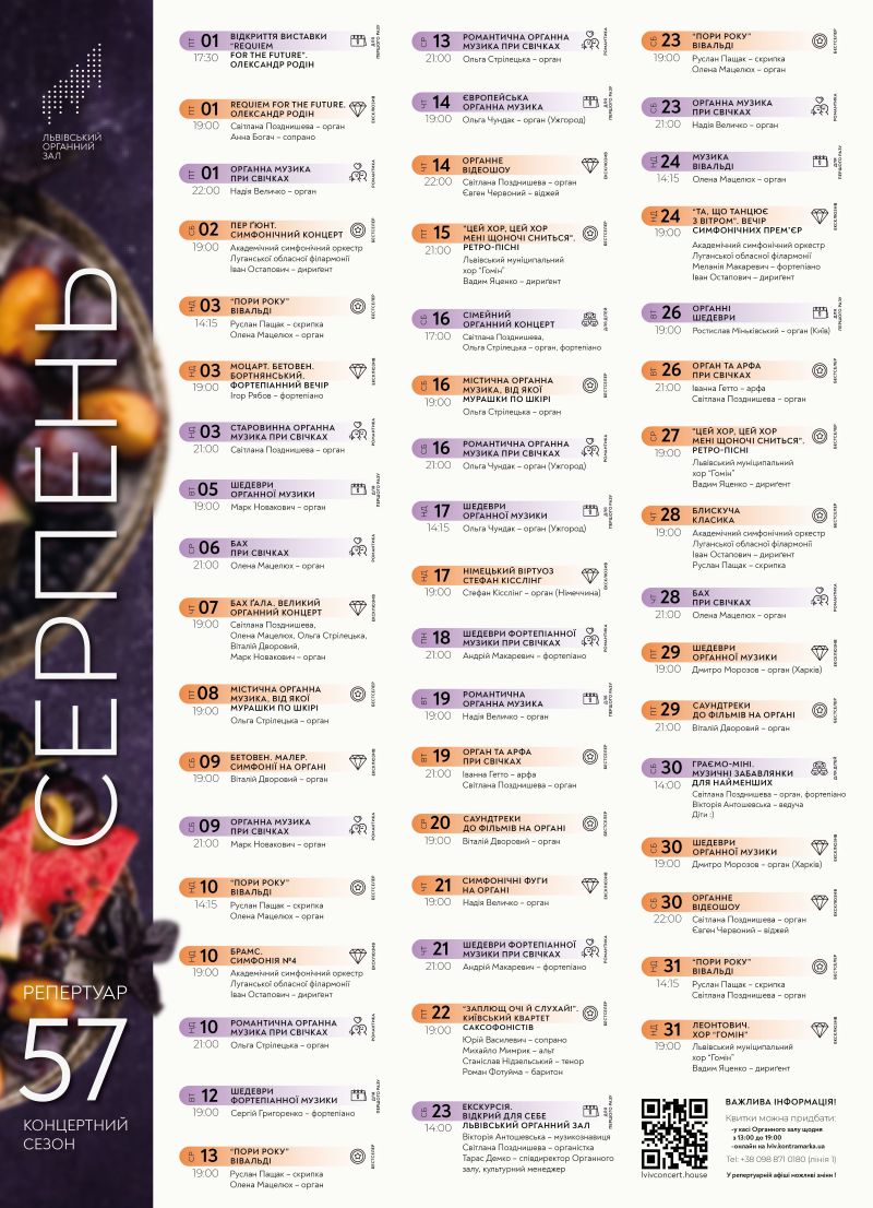Серпень у Львівському органному залі: світові премʼєри, гастролі зірок та бестселери