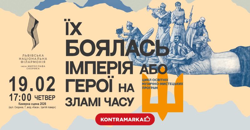 Продовжуємо у Львівській національній філармонії імені Мирослава Скорика цикл програм про героїв, яких боялась імперія, яких зумисно стирали з пам’яті і яких до тепер вбиває і нищить наш ворог. У кожній програмі будуть розповіді про наших українських героїв від часів першої світової війни і до сьогодні, а також у виконанні солістів Львівської національної філармонії звучатимуть музичні твори та поезія, які супроводжували наших героїв у різні часи боротьби за українську незалежність аж до воєнного сьогодення.
