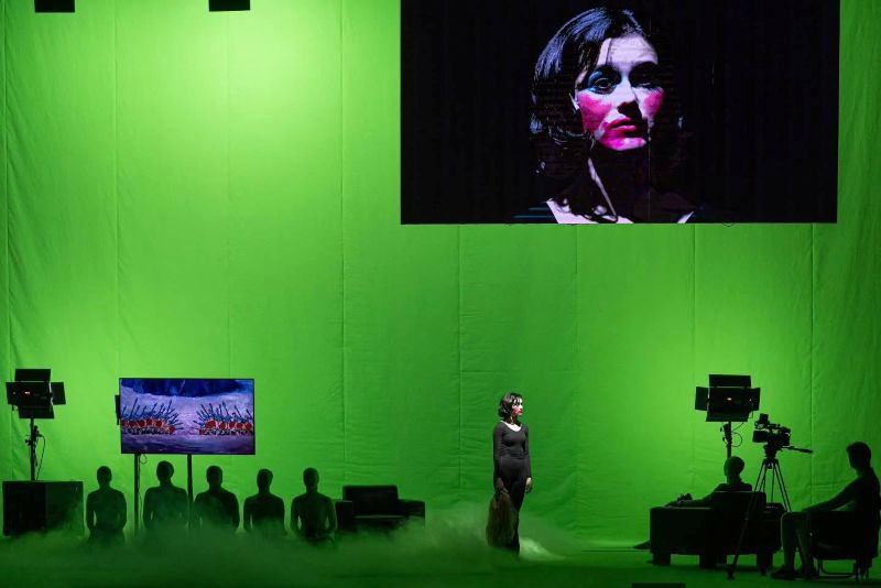На яскраво зеленому фоні( хрома кей - на цей фон при зйомці можна накласти все що завгодно, будь-який ефект)розігрується драма автора, якого не чують, думки якого тонуть в кон'юнктурі традиційних поглядів на п'єсу,і яки висвітлені у виставі гострою сатирою. В автора не вірять всі: починаючи від батька, закінчуючи творцями п'єси, які ,не чуючи думки митця, розповідають як краще, цікавіше, розважальніше.