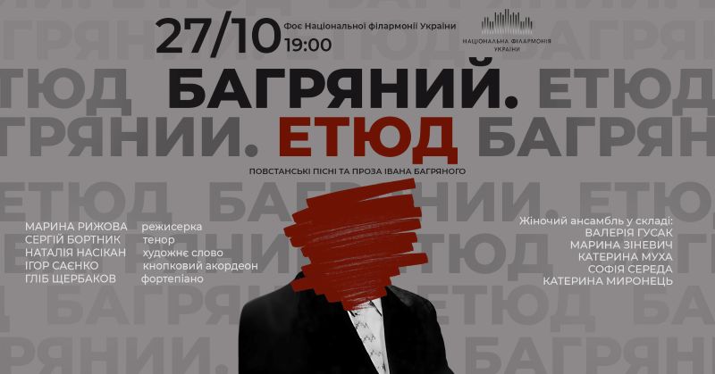 27 жовтня у фойє Національної філармонії: лунатимуть повстанські пісні та проза Івана Багряного
