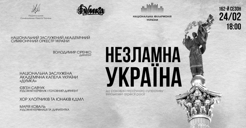 24 лютого у Національній філармонії відбудеться концерт до роковин героїчного супротиву військовій агресії росії
