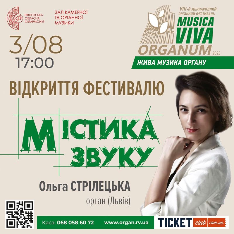 Цьогоріч фестиваль відкриває львівська органістка Ольга Стрілецька – піаністка, науковиця, виконавиця з витонченим смаком і широким творчим діапазоном. У її інтерпретації орган звучить глибоко, переконливо, з тонкою емоційною драматургією. Вона поєднує академічну школу з сучасним баченням репертуару.